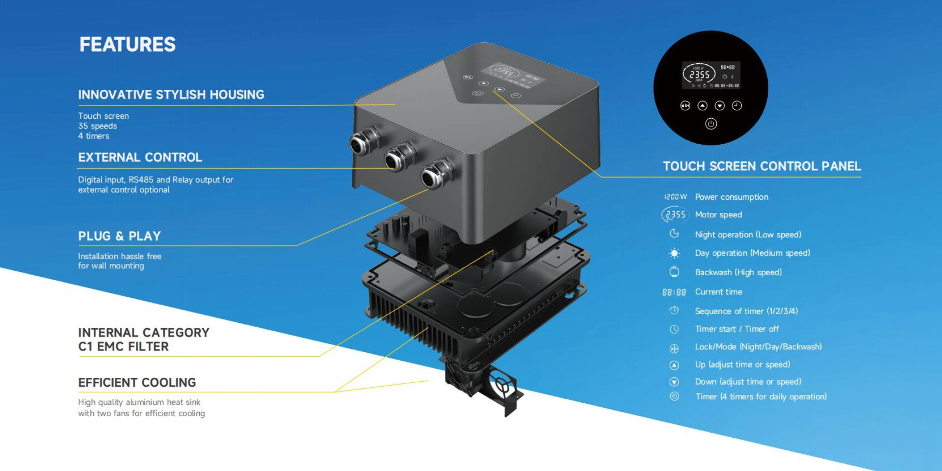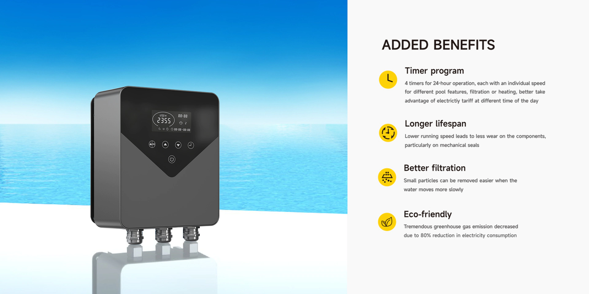 Az AquaSphere Inverter Box egy érintőképernyős frekvenciaváltó, amelyet kifejezetten arra terveztek, hogy forradalmasítsa a hagyományos, egysebességes medenceszivattyúk működését. Felejtse el a folyamatosan maximális teljesítményen zúgó gépeket és a magas villanyszámlát! Az Inverter Box segítségével Ön szabályozhatja a szivattyú sebességét, így csak annyi energiát használ, amennyire valóban szükség van.