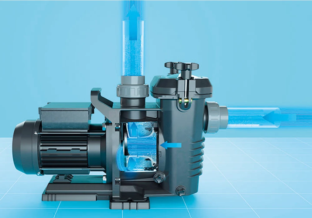 Kompakt önfelszívó szivattyú – megbízható indítás és üzemelés a medencegépeti rendszerekben.