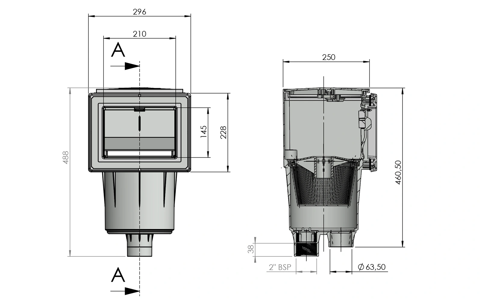 Astralpool SPS 250 szkimmer magas minőségű elszívó fóliás és előre gyártott medencékhez, de ideális lehet még fémvázas, PP illetve üvegszállas medencékhez is.