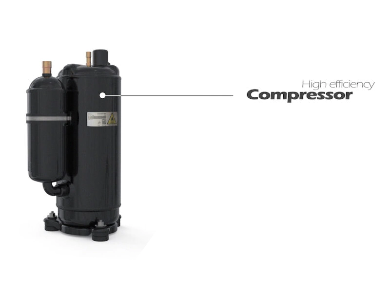 A titánium hőcserélő bemenetében lévő hőmérsékletet a vezérlőrendszer összehasonlítja a célhőmérséklettel, és az eredmény alapján be- és kikapcsolja a hőszivattyút. A termosztát érzékenysége gyárilag 1°C-ra van beállítva, a kikapcsolásra akkor kerül sor, amikor a hőcserélőben a víz hőmérséklete eléri a célhőmérsékletet; a bekapcsolásra akkor kerül sor, ha a hőcserélőben a víz hőmérséklete a célhőmérséklet termosztát érzékenységi értéke alá csökken. A hőszivattyú bekapcsolásához szükséges hőmérséklet elérésekor késleltetés aktiválódik. A tartósággot a Toshiba kompresszor garantálja!