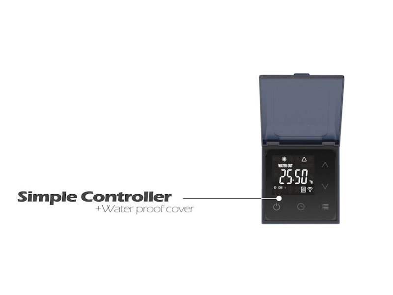 A titánium hőcserélő bemenetében lévő hőmérsékletet a vezérlőrendszer összehasonlítja a célhőmérséklettel, és az eredmény alapján be- és kikapcsolja a hőszivattyút. A termosztát érzékenysége gyárilag 1°C-ra van beállítva, a kikapcsolásra akkor kerül sor, amikor a hőcserélőben a víz hőmérséklete eléri a célhőmérsékletet; a bekapcsolásra akkor kerül sor, ha a hőcserélőben a víz hőmérséklete a célhőmérséklet termosztát érzékenységi értéke alá csökken. A hőszivattyú bekapcsolásához szükséges hőmérséklet elérésekor késleltetés aktiválódik. A tartósággot a Toshiba kompresszor garantálja!