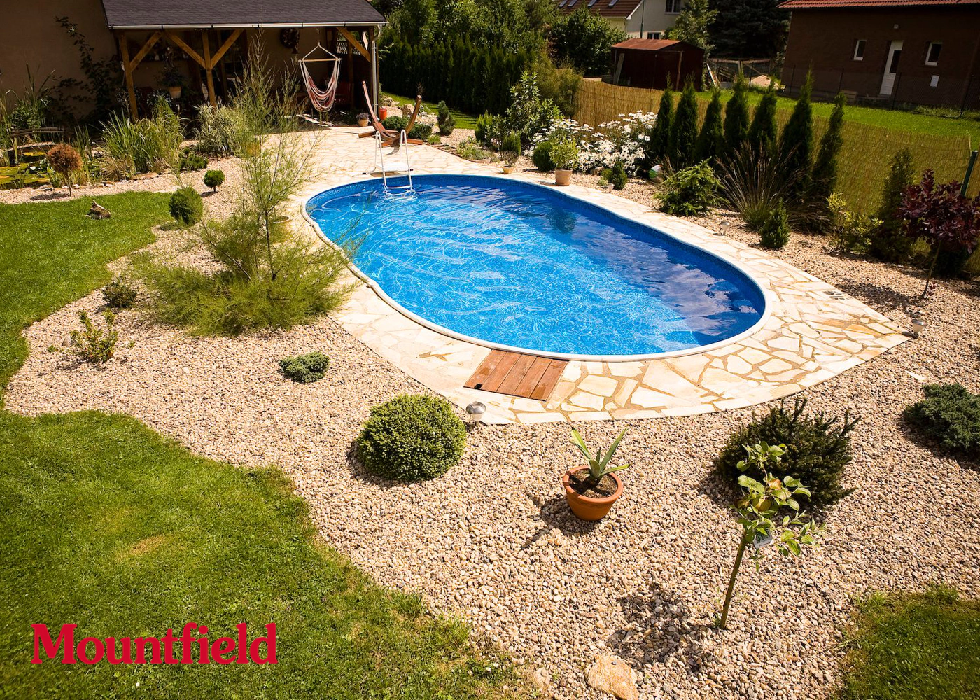 MOUNTFIELD AZURO acélfalú medence famintás színben és 730x370x120cm (ovális) méretben. Kiváló választás, ha házilag könnyen felállítható és egyben tartós medencére vágyik a kertjében!