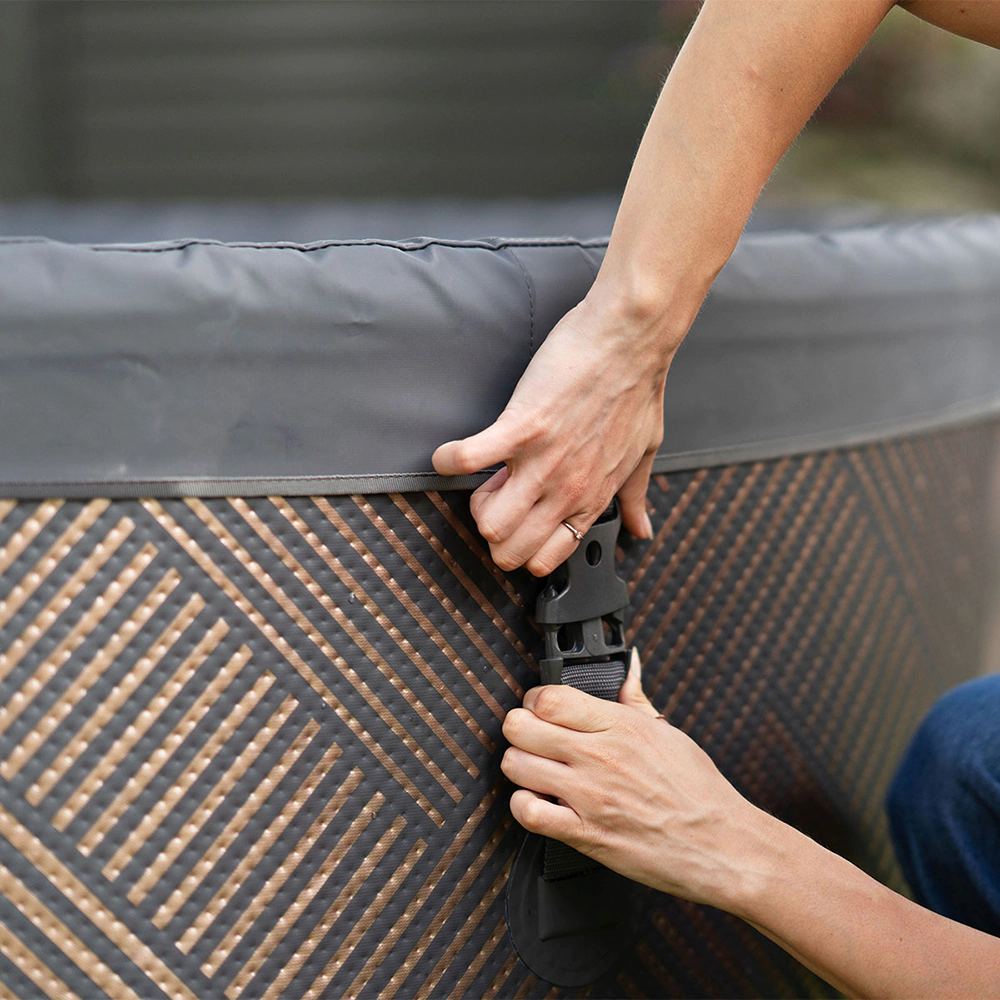 Az MSpa Mono Eco F-MO082W prémium felfújható masszázsmedence modern kialakítással, fejlett technológiával és energiatakarékos működéssel nyújt otthoni spa-élményt! Letisztult megjelenése bármilyen kertbe, teraszra vagy fedett wellness térbe tökéletesen illeszkedik. Az antracit szürke, texturált mintázatával a felfújható pezsgőfürdők világának modernistája. Akár beltéren, akár kültéren szeretnéd elhelyezni, a MONO hordozható jakuzzi forradalmi koncepciójával és funkcióival feldobja otthonodat.