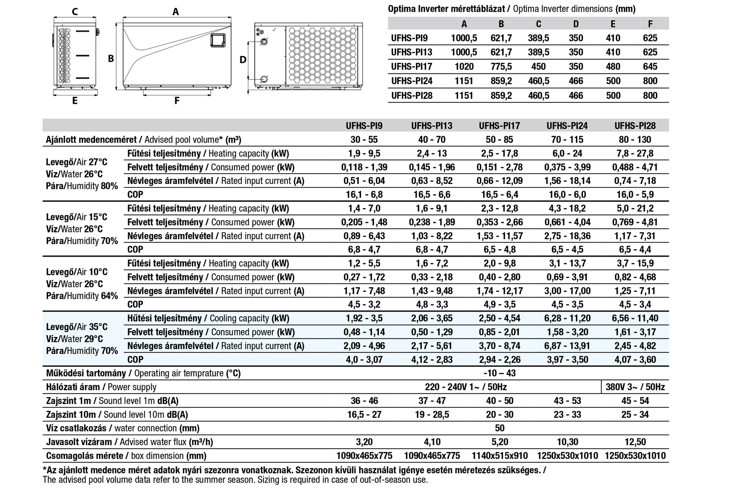 UFHS-PI9 PHNIX Optima Inverter Plus + WiFi medence hőszivattyú 9,5 kW |