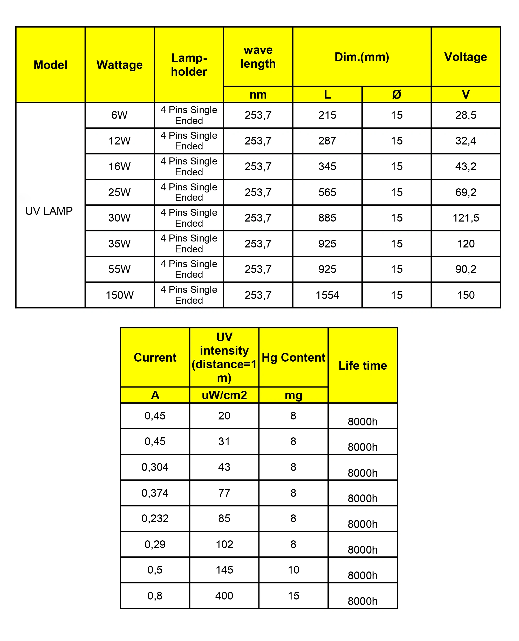 | Hullámhossz: | 254 nm (UV-C tartomány) | ||